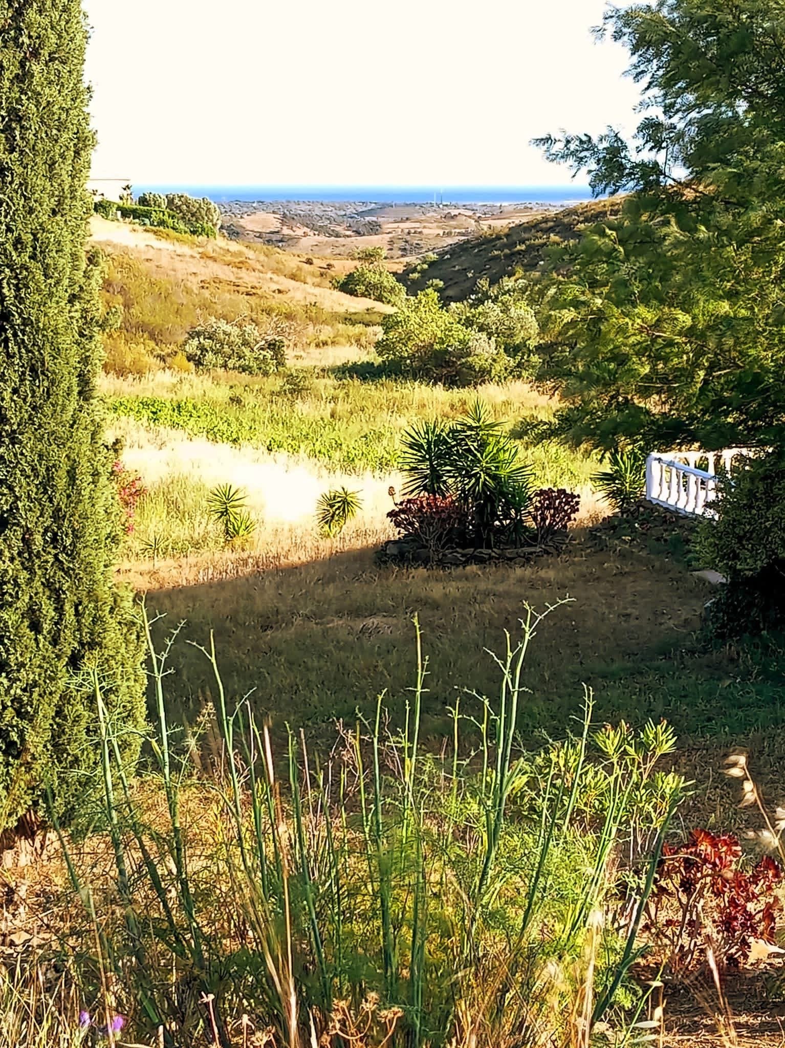 - A panoramic patio—the highlight of the villa—facing the ocean and shaded by Mediterranean flora